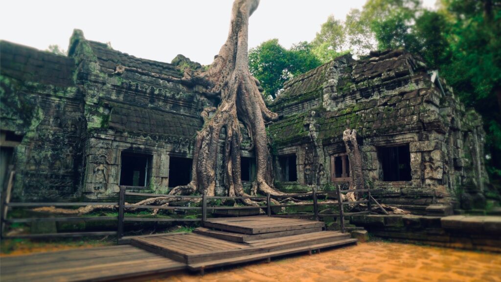 The massive trees here make it look otherworldly, almost unreal. This temple was used in the 2001 movie Lara Croft: Tomb Raider with Angelina Jolie. When these trees start to die they can actually pull a whole wall down with them. Because of this, the trees are closely monitored now and their roots cut away from the temple if they start to die off.