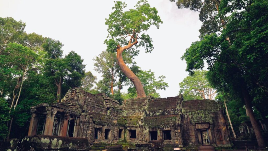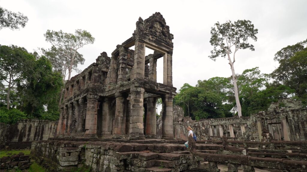 Preah Khan is a section that contained royal palaces, the university, and the Royal Circus, among many other things. It also features a unique building referred to as “the library”. What makes this pavilion unique is that it is the only building with round, Roman style columns.