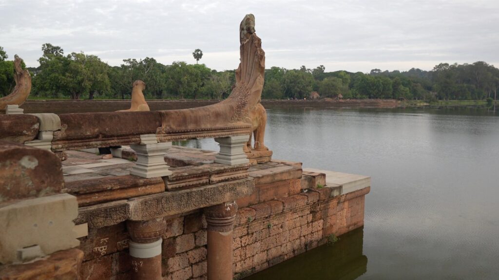 King Jayavaraman VII had 102 hospitals constructed around the city, but one really stands out, Neak Pean. This was a completely different experience as it was built on an island in Lake Baray. A bridge leads you to the island and when I was there the surrounding lake was full of Lotus flowers with lovely pink blossoms.
