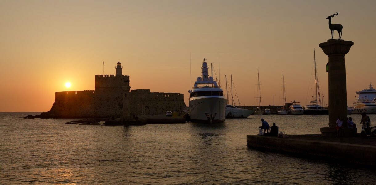 I took the Sea Dreams Ferry from Marmaris, Turkey to the Greek island of Rhodes. It only took about an hour and cost $43.00. The ferry had comfortable seating, air-conditioning, nice restrooms, and a small kiosk to buy drinks and snacks. Before I knew it the ferry was pulling into the ancient port in the Old City of Rhodes Harbor.